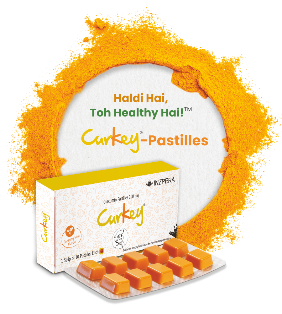 Curkey is a softgel pastille formulation, formulated using advanced Buccal Absorption Technology (BAT) that ensures optimum bioavailability of curcumin, and provides quick sustained relief from sore throat/URTI.